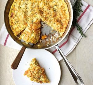 I love Butternut Squash and was looking for ways to incorporate it into breakfast. This Frittata recipe fit the bill. You can make it in a cast iron skillet and serve wedges or I use individual frittata rings. The combination of the sweetness from the squash, the salt from the bacon and the earthiness from aged gruyere have my guests so enjoying the fall flavors.