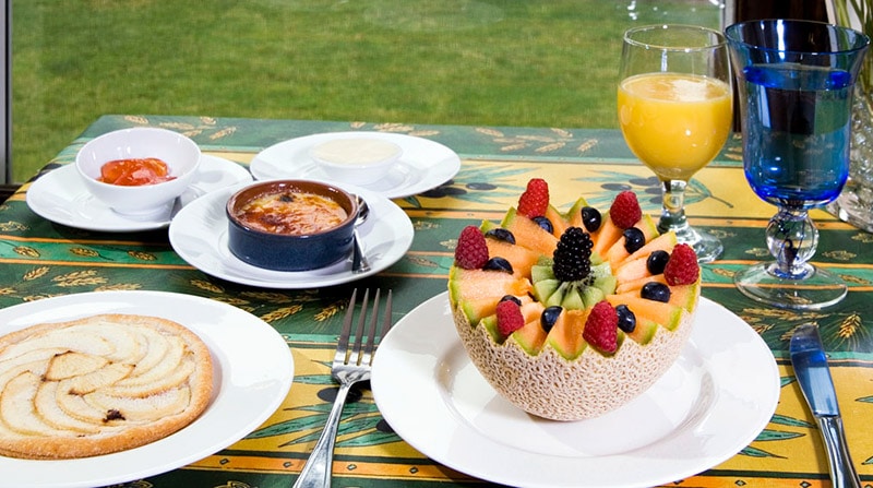 Our dining room is set in a Provencal style with individual tables provided for our guests. This allows you to chat with fellow bed and breakfast guests or focus on your travelling companion as is your preference.