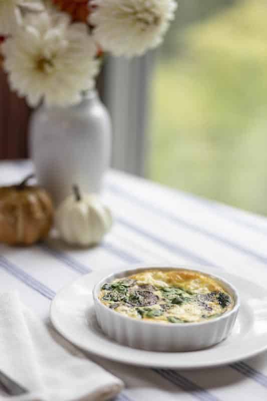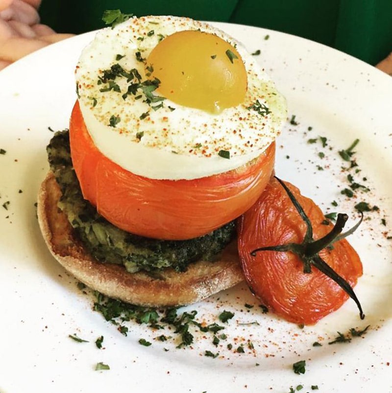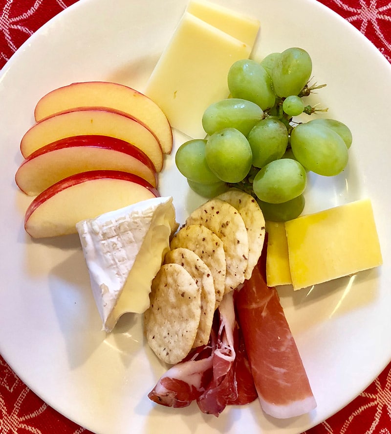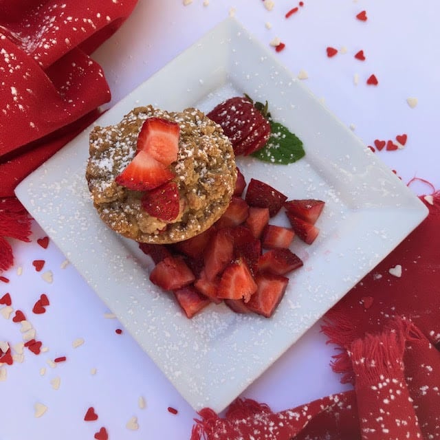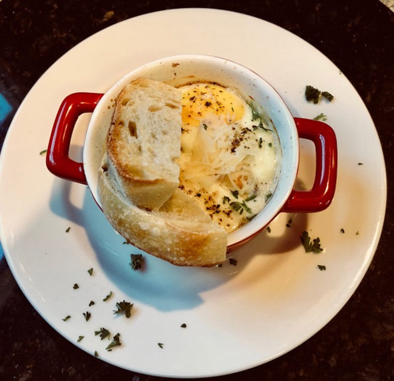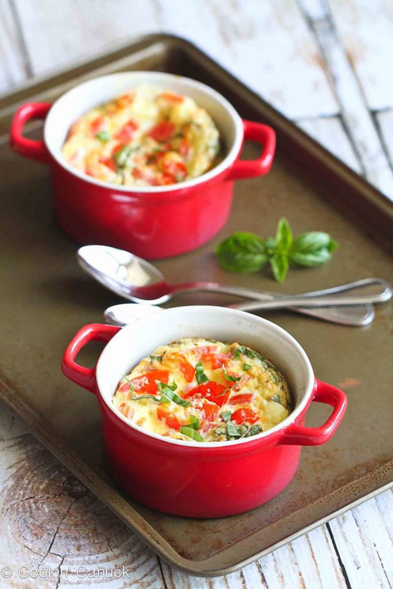 Your hot entree may be Caprese Baked Eggs which starts with a layer of cherry tomatoes sprinkled with mozzarella, roasted garlic seasoning and fresh basil. This is topped with two eggs and lightly covered with more tomato, mozzarella, and basil and baked until the cheese is bubbling.