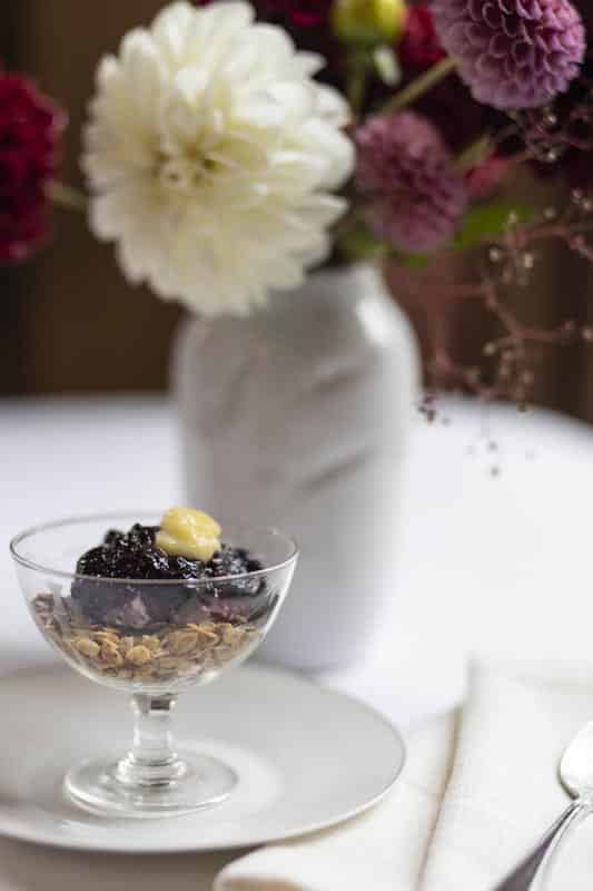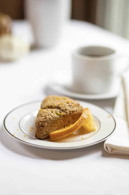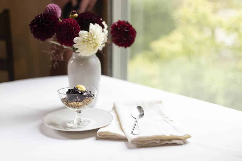 A sample breakfast would start with fresh baked croissants served with McMinnville sourced raspberry peach Chardonnay jam, followed by our house-made granola parfait with vanilla greek yogurt, housemade blueberry compote and housemade lemon curd. Orange juice and blueberry pomegranate juice are also offered.